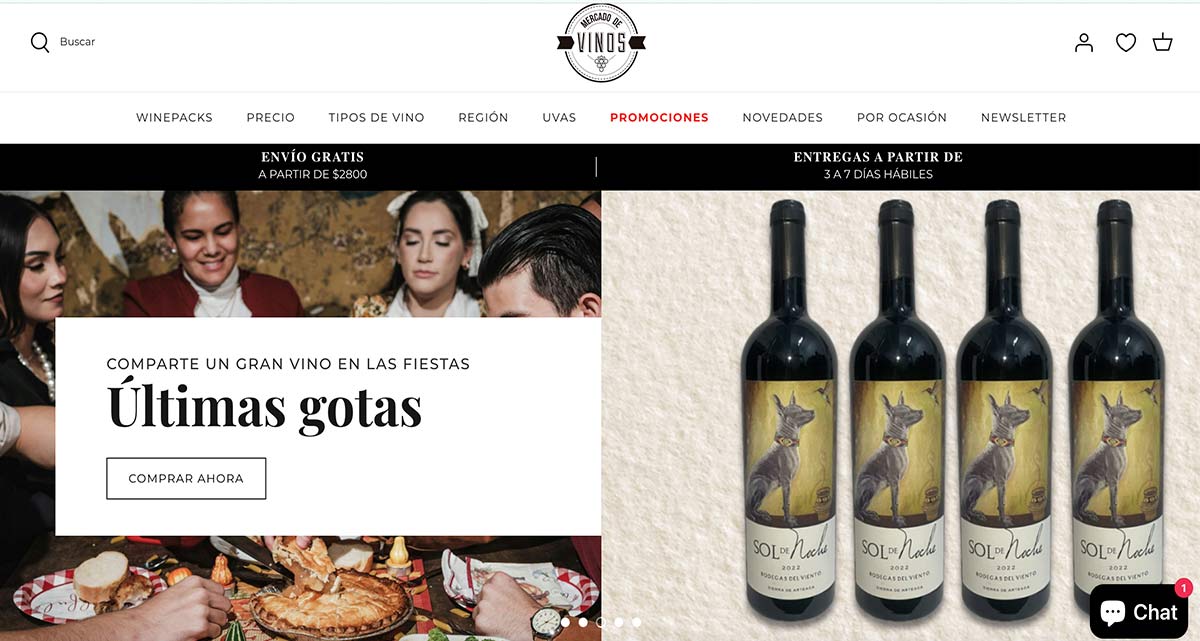 Tienda Online Shopify para para Mercado de Vinos, empresa distribuidora de vinos que hoy vende directo a clientes, teniendo opciones para iniciales o expertos.